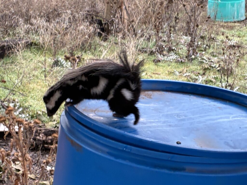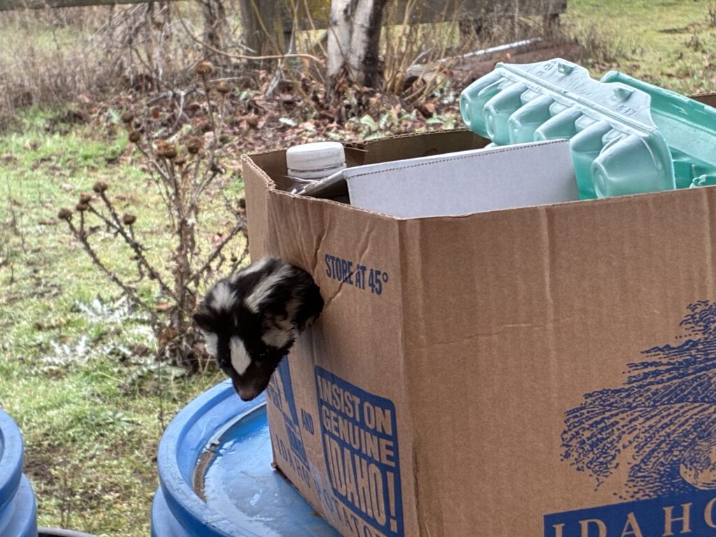 I made 3 trips out to Goodrich today. The first trip was at 8 AM for a pet sitting opportunity. The owner wanted to show me a few things right before she left. The second trip was around 2:30 in the strong when I went to Mr. and Mrs. H’s. I did some cleaning and organizing for them. While I was there I saw a little western spotted skunk. He was so cute! Before I drove back to Council, I stopped at my pet sitting opportunity, fed the animals and played fetch with the dogs. The third trip was later in the evening, back to my pet sitting opportunity, to stay the night.