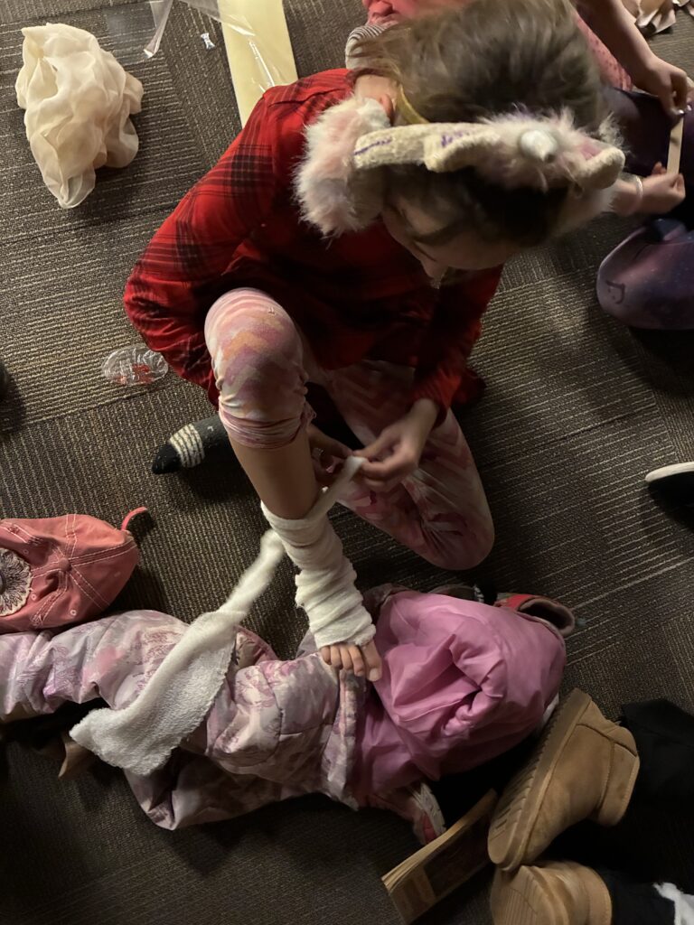 After getting Mrs. H settled in at her house, I dropped Angel off at Girls Club. I went home, put away the groceries, got a fire going in the wood stove and walked over to Girls Club. Girls Club and the Royal Rangers were learning first aide. The kids were really into it and it was fun watching them.